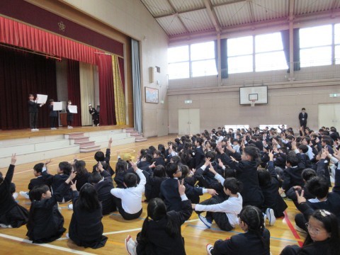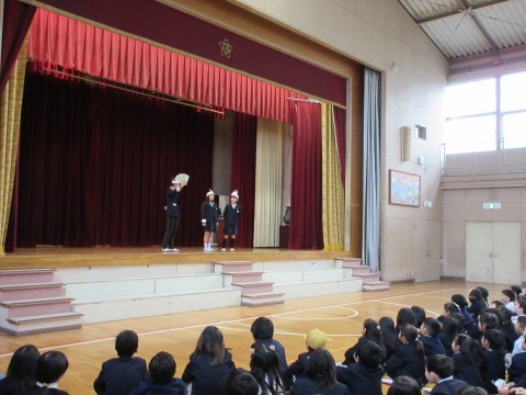 その後,児童会役員さんによる「お金・場所・時間の使い方について」の劇を観ました。途中にクイズもあり,みんなで楽しく学ぶことができました。