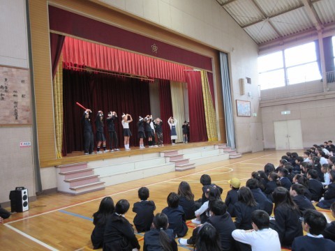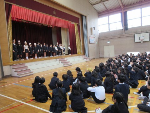 校歌を1番から3番まで歌った後,校長先生からは「2学期よく頑張りました!ルールを守って楽しい冬休みを過ごして下さい」とお話しがありました。