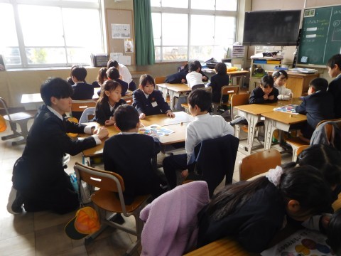 2組も班になって、冬休みすごろくをしています。
