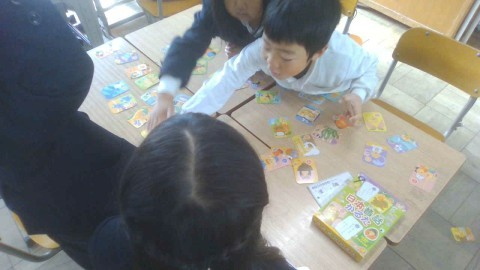 今日から始業式!!教室に入ると,元気な声であいさつをしてくれました。とても素敵なスタートですね。みんなは,思い出に残る冬休みを過ごすことができましたか?さあ,3学期がスタートしました。みんなで,仲良く元気に3学期を過ごしていこうね。久しぶりにかるたをしました。「冬休みに,かるたしたよ」「目標は20枚!!」とあちこちで聞こえてきました。読み札を読んだ瞬間,「取れた!!!」との声が!!みんな取るのがとても早い!!お正月遊びを楽しみました。