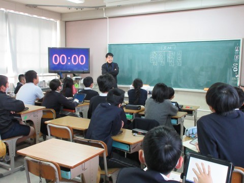 3組は社会。「西南戦争」について自分たちでPCを使ってノートにまとめています。
