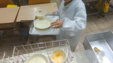 今日から待ちに待った給食がスタートしました。3学期初めての給食当番もスタートです。3時間目ぐらいから「おなかすいたな」「今日は,揚げパンや!!」と楽しみにしていたみんなです。給食場についたら,牛乳係の人が何かに気づきました。袋には素敵な絵が!!さっそく,教室に飾りました。サプライズプレゼント,とても嬉しいね!!初日から,完食する人もいました。これからも,もりもり食べて成長していこうね!!ごちそうさまでした!!