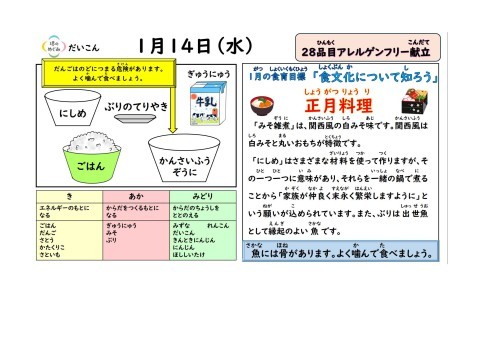 1/14 今日の給食は「お正月献立🎍」です