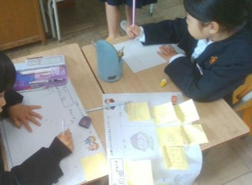 今日は,新1年生にしてあげたいなということをグループで書き出していきました。たくさんのふせんに,みんなの考えがいっぱいつまっていました。「遊具の使い方を教えてあげたいな」「ほうきのはき方を一緒にしたいな」「点つなぎ,作ってあげたい」など,みんなのおもしろい考えにびっくり!!活動を始めていくと,さらにしたいことが思いついていくグループもありました。「こうしたら,分かりやすいかな」と,新1年生の目線に立っている姿は,さすがでした。ぜひ,新1年生がわくわくしそうな活動などを考えて,一緒に交流していきたいね。