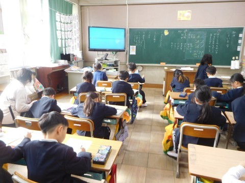 1組は書写です。「ン」や「ソ」、「シ」や「ツ」など、似ている字を、気を付けながら