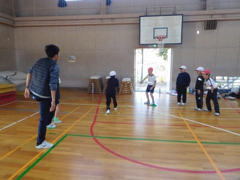 2組は体育です。大縄跳びの練習をしています。