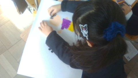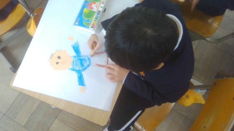 3学期,久しぶりの図工でした。今日は,「できたらいいな,こんなこと」という単元です。みんなが思い出に残っていることや,できるようになったこととこんなことしたいなという夢をコラボして描きます。たくさんイメージを膨らませてから,描き始めました。「走るの早いから,動物と競争してみたい」「雲の上で,なわとびしたら楽しいかも」と,楽しそうな様子でした。みんなの作品,完成を楽しみにしています!