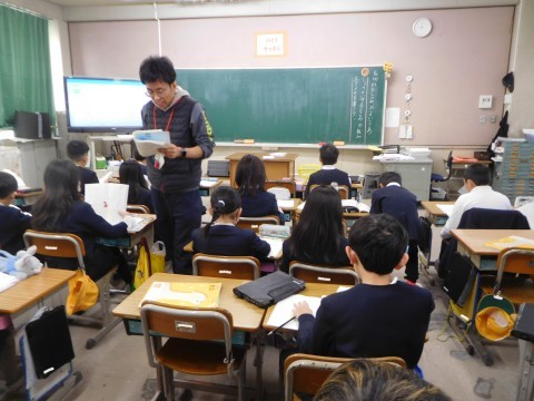 1組は「詩のくふうを楽しもう」の漢字テストをしています。