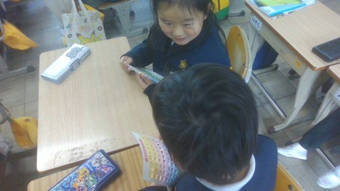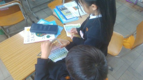 算数で100を学びました。今日はビンゴカードのようなものを活用して,数の並び方を学習していきました。「一の位が6の数は,どう並んでいるのかな?」などの質問をみんなで考えていきました。いろいろな問題を解いていくと,「十の位が〇のときは,横に1列になってる」という大発見が!!「確かに!!」とみんなで納得しました。楽しく数のこと学ぶことができたね!!