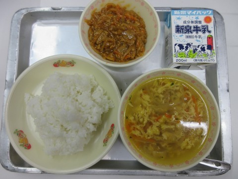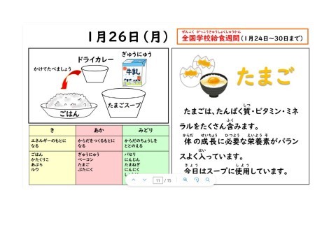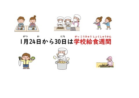 今日は給食担当より「24日から学校給食週間です。給食のことをより詳しく知るために,ぜひ教室で見てください」と「学校給食の歴史」と「給食場の一日」という2つのパワーポイントの資料が紹介されました。各教室で紹介されます。ぜひご家庭でどんなお話しだったか,聞いてみてくださいね💗