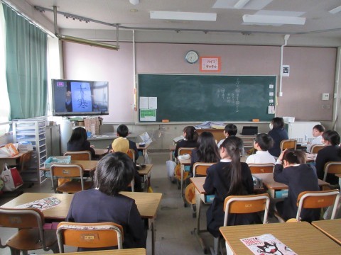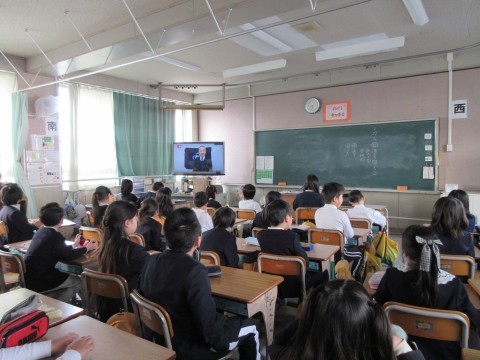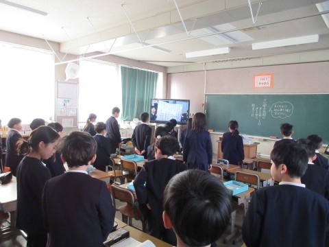 1/27 全校テレビ朝礼の様子