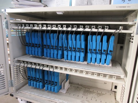 昨日納品されたiPadが教室の保管庫にきれいに並んで充電されていました!