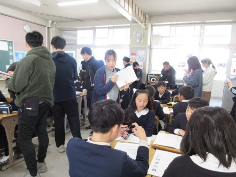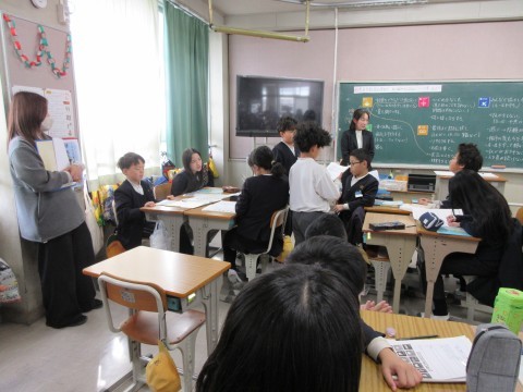 班で意見を出し合って、学校で取り組めるSDGsの活動について考えています。