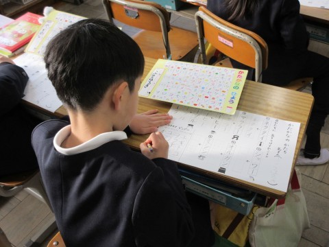 2組は漢字の学習中✐ できた人から,先生に見てもらうために並んでいるところでした。花丸もらえるかな?☺