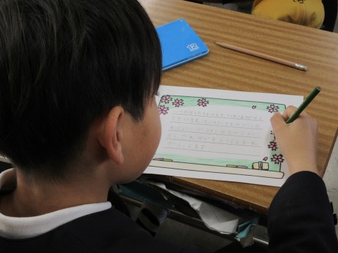 2組は,いつもお世話になっている地域の方へ感謝のお手紙を書いていました✿ 心を込めて丁寧に色塗りをしていましたよ💕