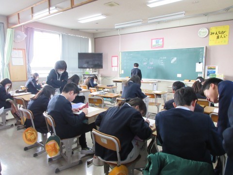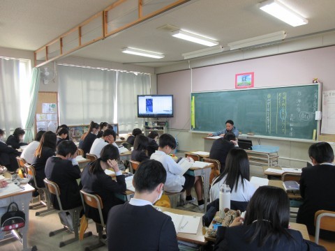 2組・3組は国語「海の命」の学習。2組は登場人物について考えていました。3組は範読を聞いていました。