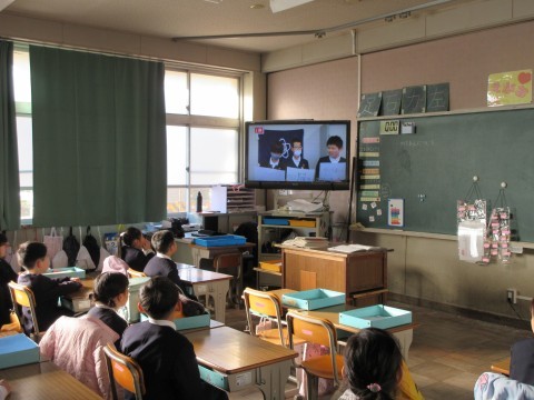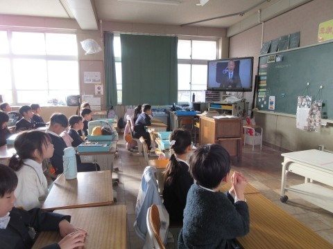 2/3 テレビ朝礼の様子① 公開日 2026/02/03 更新日 2026/02/03 学校行事 今日はテレビ朝礼でした。校長先生から「節分」についてのお話しがありました。自分でいろいろ調べてみるのも楽しそうですね!その後,「海とさかなコンクール」の表彰や,体育委員会,給食委員会からのお知らせがありました。最後は今月の生活目標について,生徒指導部会の先生よりお話しがありました。 +2