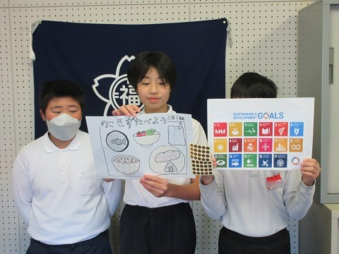 校長先生からの「節分」のお話に続き,「海と魚のコンクール」の表彰,体育委員会&給食委員会からのお知らせの様子です。すごく迫力のある魚の絵に驚きました✨今日から始まるかけ足チャレンジ,残さず食べようキャンペーン,健康な体をつくるためにみんなでがんばっていきましょう☺✨そして,今月の生活目標は「思いやりのある行動をとろう」です。今月,福田小学校のあちこちから「ありがとう」が聞こえてくると嬉しいな💕