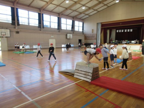 1組は体育館でとび箱にチャレンジ!