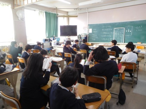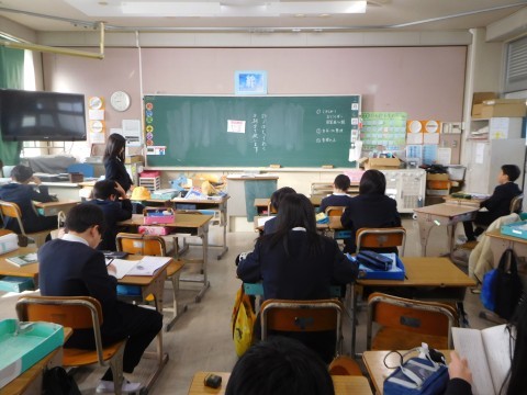 2組は静かに読書をしています。3組は計算ドリルや読書に取り組んでいましたよ。