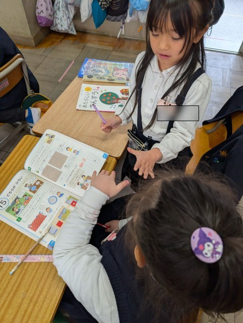 今日は,新しい単元に入りました。「どちらが広い?」を調べるには,端を揃えてみると分かるということが分かったね。最後は,陣取りゲームで遊びました。「〇マス塗れたから勝った!」など,今日の学習を振り返っていました。また,陣取りゲームできたらいいね。