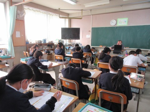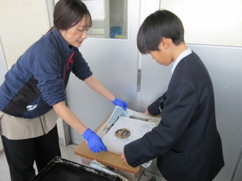 3組は図工「彫った線から始まるお話し」。いよいよ版画します!