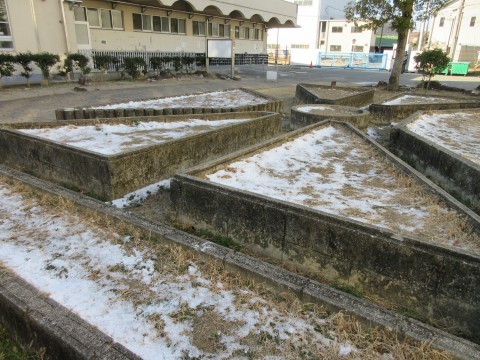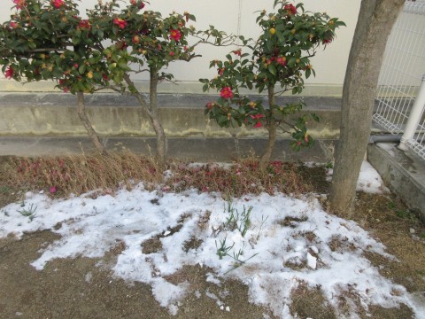 昨日降った雪がまだ残り,氷のようにカチカチになっています。