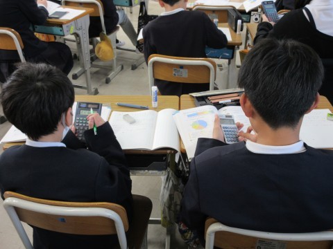 1組は算数。データの集計をして,帯グラフや円グラフにまとめます📊