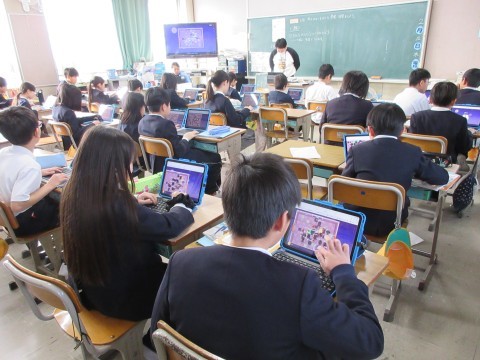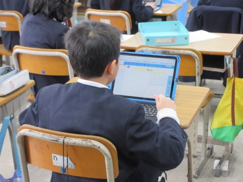 3組は理科。テストを終えた人から,「ものの溶け方」についてタブレットでレポート作成です💻