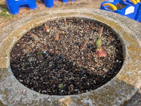 今日は日差しがあるので,温かく感じます。みんなのチューリップも,どんどん背が高くなってきたね。昨日の雨が恵みの雨になったかもしれないね。また,学校に来たら観察してみてね。