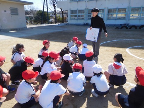 2組は体育です。「サークル的当てゲーム」のルールの確認をしていましたよ。