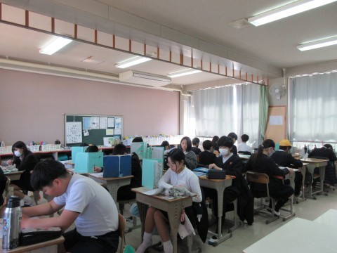 2組は社会のテスト中です。