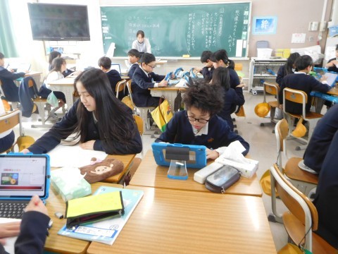 1組は総合です。SDGsについて、班で話し合いながらまとめています。