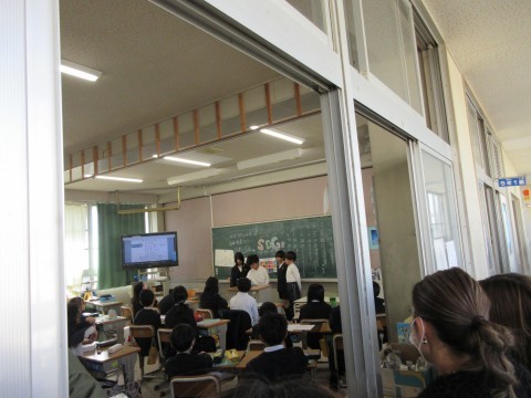 どのクラスも総合で「SDGs」について調べたことを発表していました。