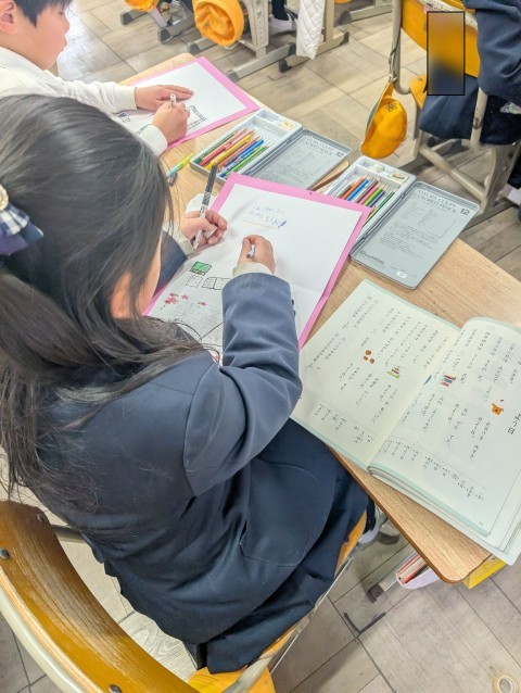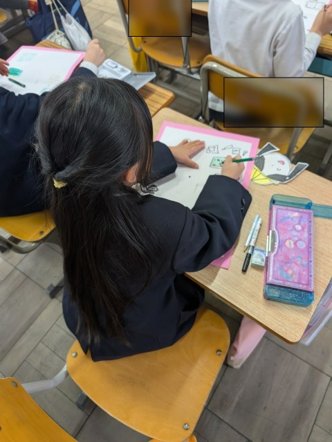 新1年生のプレゼント作りの続きをしました。飛び出す絵本のようなものを作っています。みんなの素敵なメッセージやイラストつきです。きっと喜んでくれるだろうな!!渡す時,わくわくするね。
