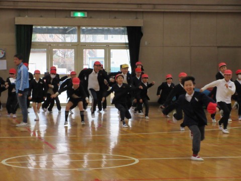 2/25 3-2,5-2,5-3の「だるまさんがころんだ大会」 公開日 2026/02/25 更新日 2026/02/25 学校行事 今日は3年2組と5年2組・3組のペア交流「だるまさんがころんだ大会」でした。スライディングしてしまうと,止まれません!早くゴールしたいけど,体育館の床は思ったよりも滑る💦そんなこんなで,ゴールした人の数は,赤チームの人のほうが2回戦とも多くて,今日の勝負は赤の勝ちでした🚩 +3