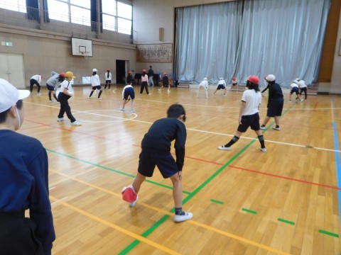 3組は体育です。今日はバスケットボールの学習です。