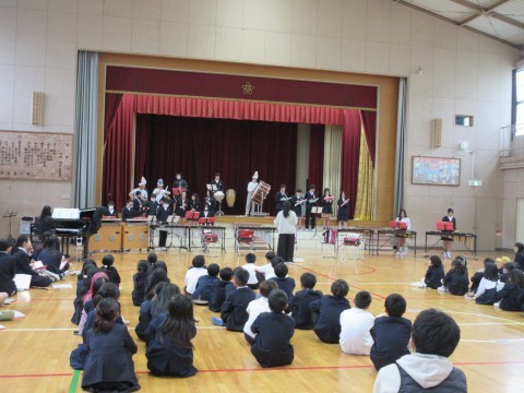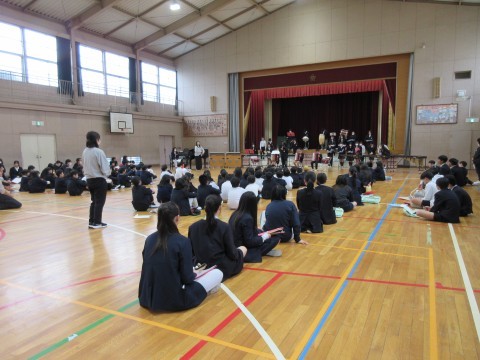 5時間目に体育館で卒業コンサートに向けての全体練習が行われました。今日は3年生のお客さんも来てくれています💗