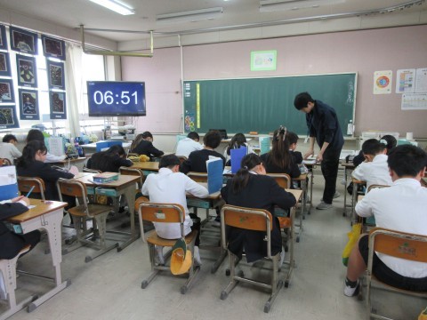 1組は国語のテストをする前に確認をしていました。「文と文のつながり」では「句読点の場所」に気をつけるよう,確認していました。