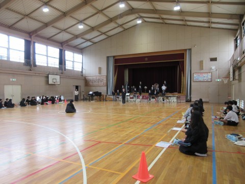6年生は明日の卒業コンサートに向けての学年練習をしていました。大きな声でセリフを言う練習もしています。がんばって!