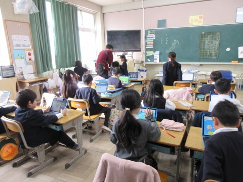 2組はiPadを使った学習です。ドリルパークやキーボード練習をしていました💻