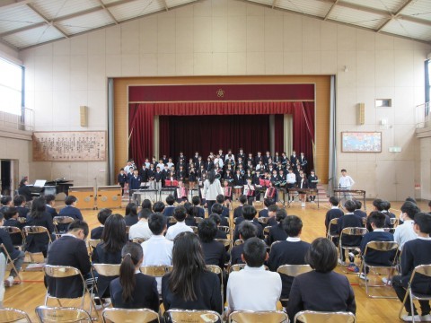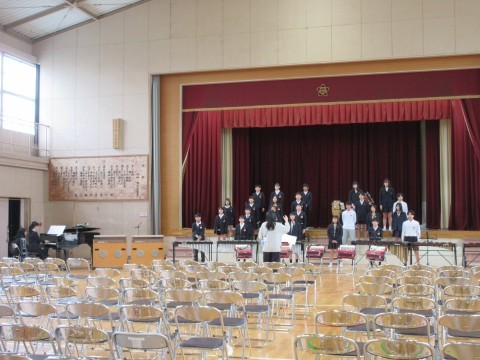 2/27 6年生「卒業コンサートリハーサル」の様子 公開日 2026/02/27 更新日 2026/02/27 6年 3・4時間目はいよいよ卒業コンサートの最終リハーサルです。3時間目は5年生もお客さんとして観に来てくれていました。いすが並び,緊張感も増します!本番のような素敵な演奏会でした。いよいよ5時間目,保護者の皆様にむけた「卒業コンサート」が始まります!保護者の皆様は,体育館は冷えますので,どうぞ暖かい格好でお越しくださいね💗 +5