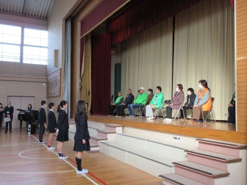 今日は見守り隊の皆さんへの「感謝の会」を開催しました。児童会の児童が中心となり,司会やお礼の言葉を述べました。各学年の代表児童がお手紙を渡し,全校児童で校歌を歌って感謝の気持ちを伝えました。暑い日も,寒い日も,風や雨が強い日も,いつも「いってらっしゃい」「おかえり」と声をかけ,安全な登下校を見守ってくださっている見守り隊の皆様には,感謝の気持ちでいっぱいです。福田っ子のために本当にありがとうございました。どうぞ,これからもよろしくお願いいたします。