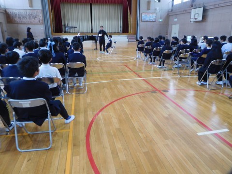 5年生は、学年で卒業式の練習をしています。
