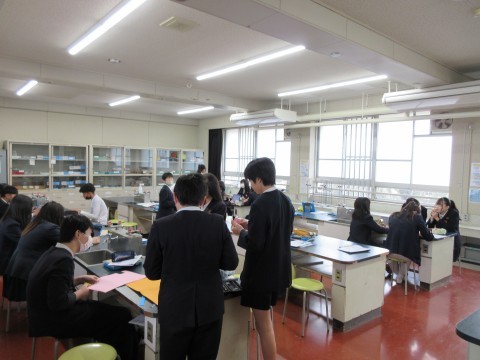 3組は理科です。理科室で理科のまとめ資料を作っていました。