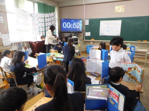 2組も国語です。「ずうっとずっと大すきだよ」のテストをしています。