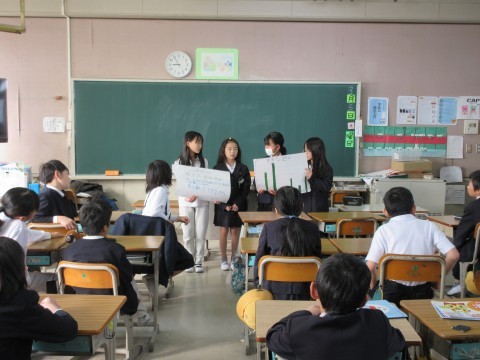 1組は国語。アンケート調査をもとに,人気の遊びについて発表していました。どうやら球技が人気のようです🥎人気の理由は何か,しっかり考察もできていましたよ。