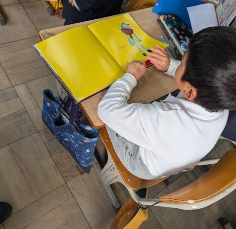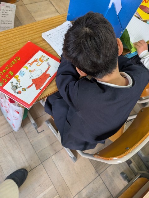 テストのあとなど,時間が余ったら読書する人が増えてきました。文章がいっぱいでも読むことができるようになってきたからかな。教室にもたくさん絵本を置いて,朝読の時間に読み聞かせをしています。「先生,100冊チャレンジの紙いっぱいになった!!」「あと10冊で,100冊になるねん」と教えてくれます。1年生のうちに何冊貯めることができるのかな?好きな絵本に出会えますように!!