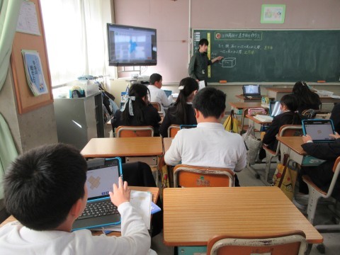 2組・3組は算数「直方体」の学習。タブレットを使って直方体に切り込みを入れ,展開図を作ってみたり,工作紙を使ってこれから,直方体を作ってみたりするようです。
