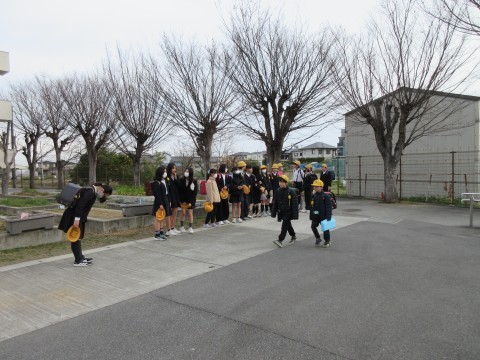 6年生が在校生と登校するのも後2日・・・・。ということで,6年生有志による「朝のあいさつ運動」が行われました🌞